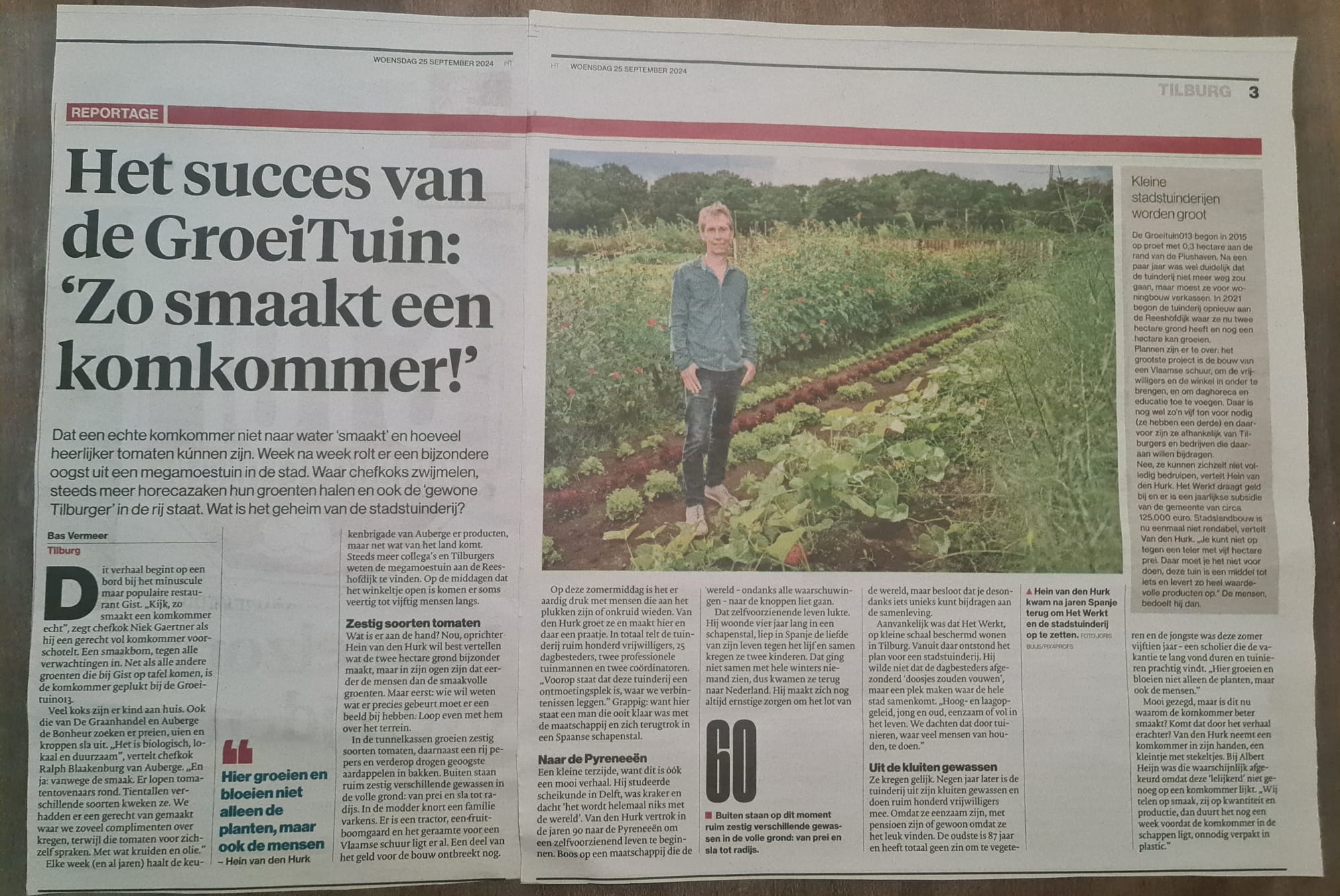 Op 25 september kopte het Brabants Dagblad over de échte smaak van een komkommer, afkomstig uit het groente-paradijs GroeiTuin013. Er stond een heel mooi artikel in de krant en op de website, waarin journalist Bas Vermeer vertelde over de tuin en zijn interview met Hein van den Hurk.
