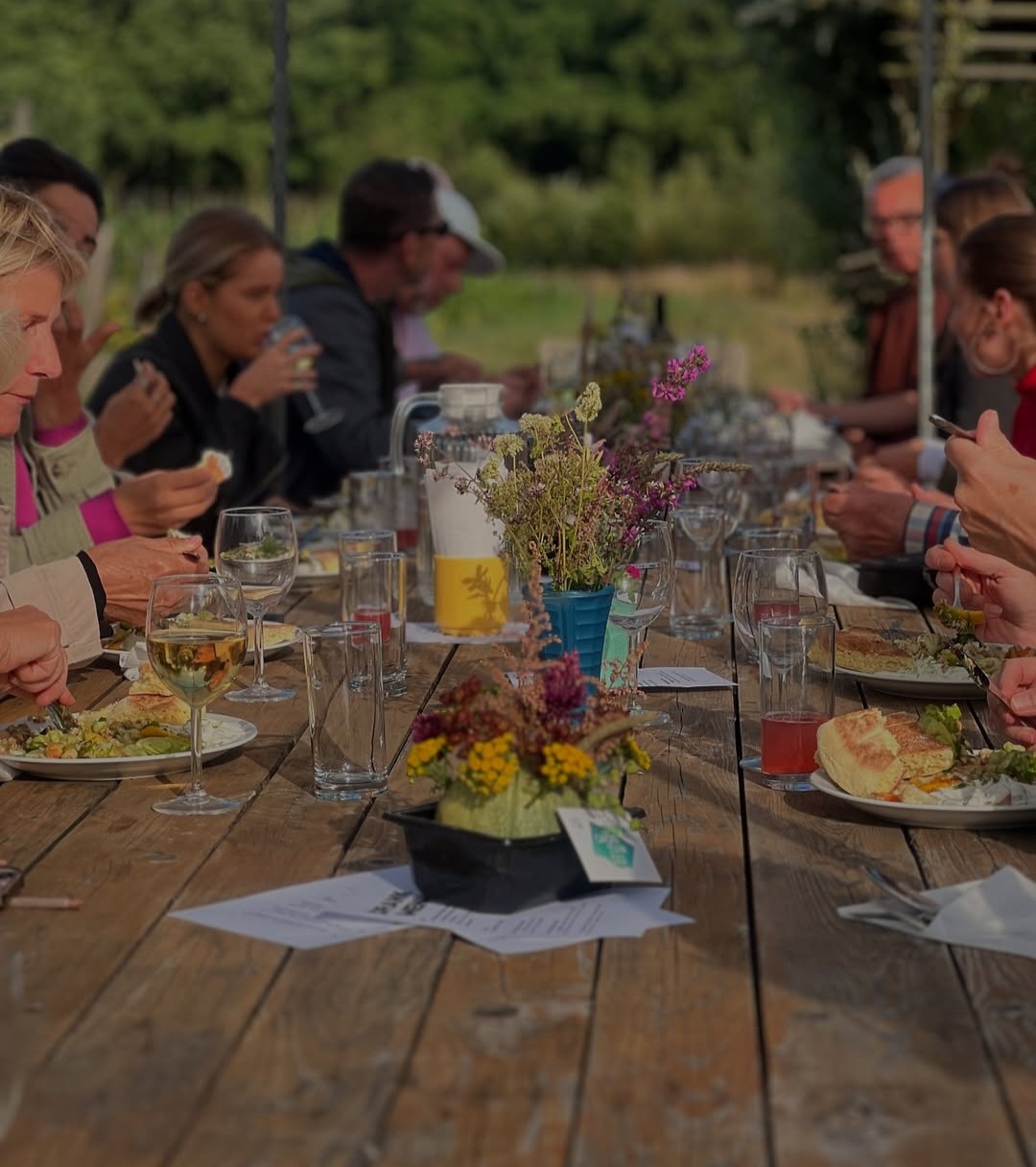 Locatie: Op de tuin en bij regen organiseren we het aan lange tafels in een van onze sfeervolle kassen.