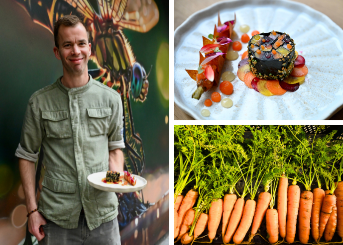 Ons 10-jarig bestaan vieren we het hele seizoen in 2025 door jullie en de lezers van Stadsnieuws elke maand te trakteren op een jubileumrecept. Telkens gemaakt van seizoenproducten uit de tuin door een bekende regionale kok. Dit keer is het recept gemaakt door Robert Bruna van restaurant Bent Oisterwijk. Een lekkernij met allerlei verschillende soorten winterwortelen. Het heet ‘Wortel op zijn Bents’. Naast wortel, heb je ook wat meer exotische ingrediënten nodig – zoals agar agar, wasabinoten en nori vellen. Lees maar mee!