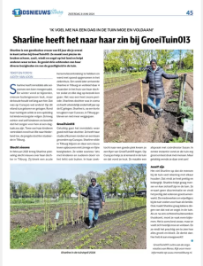 Het viel Sharline op dat de mensen bij de tuin veel rekening met elkaar houden. Dat vindt ze heel prettig en belangrijk. Sharline helpt graag mensen en kan zichzelf zijn in de tuin. Ze ervaart geen discriminatie en vindt het prettig dat iedereen goed samenwerkt. De medewerkers en vrijwilligers bij de tuin voelen voor haar als familie. Ook maakt Sharline graag lekkere dingen van dat wat ze oogst in de tuin. Als ze na een ochtend buitenwerken thuiskomt, moet ze vaak even bijkomen. Het is soms best zwaar, maar ze voelt zich heerlijk moe en voldaan. En ze vindt het prachtig om te zien hoe alles groeit en bloeit. Ze denkt dan: hier heb ik aan meegewerkt!