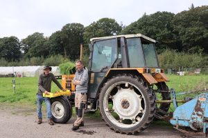 nieuwe tuin de strokenteelt voorgesteld zodat het overzichtelijker is wat waar groeit én het makkelijker bij te houden is. De tractor neemt ondertussen veel werk over, vroeger was alles handwerk. Door de vergroting van de tuin (van 2800 naar 4000 m2) is het aantal vrijwilligers ook toegenomen (van 70 naar 100). En die moeten allemaal aangestuurd worden… door de tuinmannen. Gelukkig staat Theo er al een aantal jaar niet meer alleen voor als tuinman. Erik Meijs versterkt hem sinds 2019 en dit jaar is daar Janna nog bijgekomen zodat Theo zich volledig kan concentreren op zijn paradepaardjes.